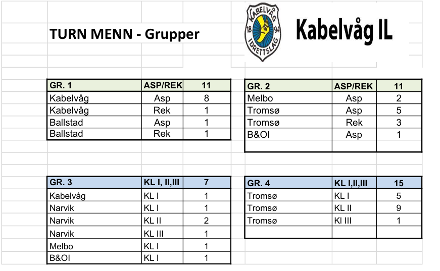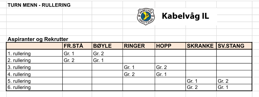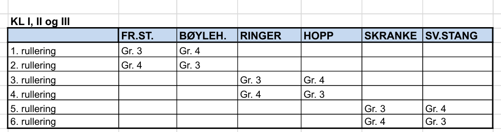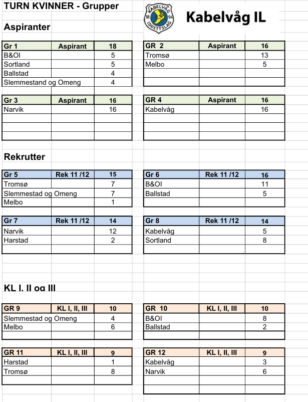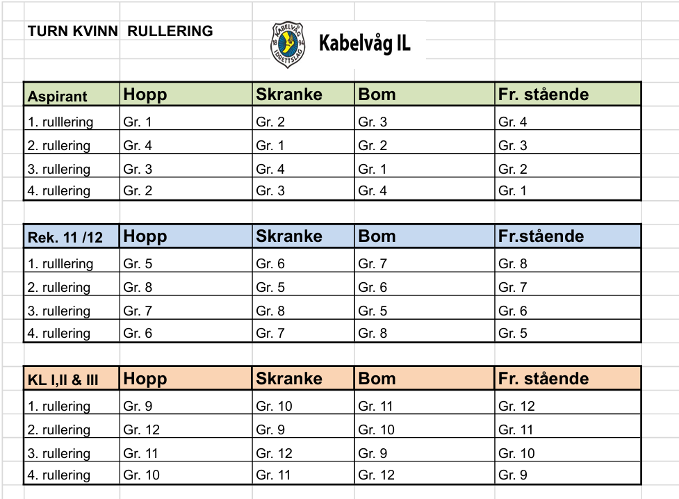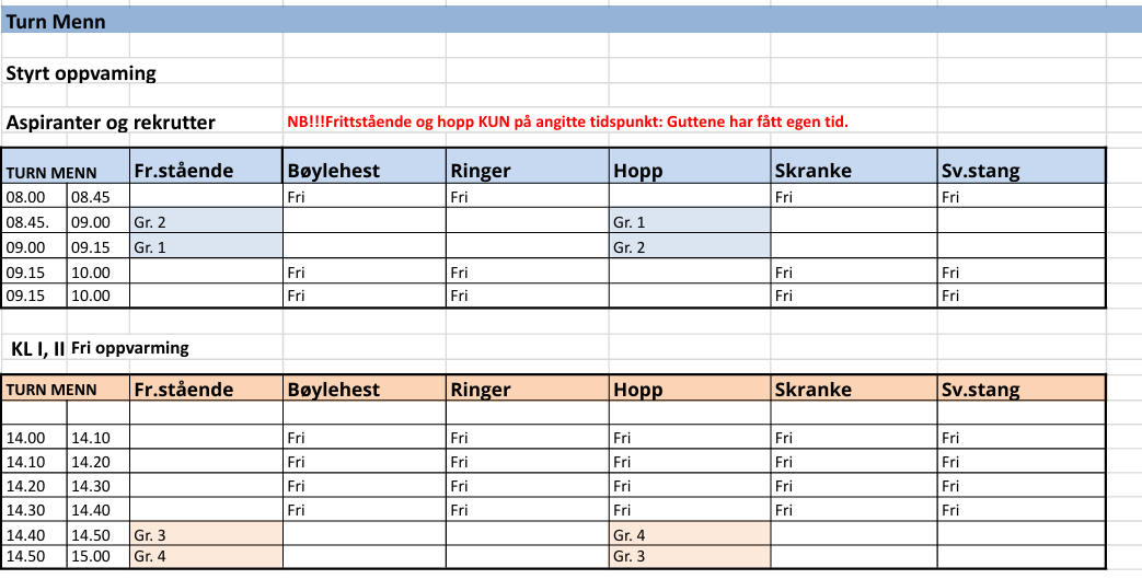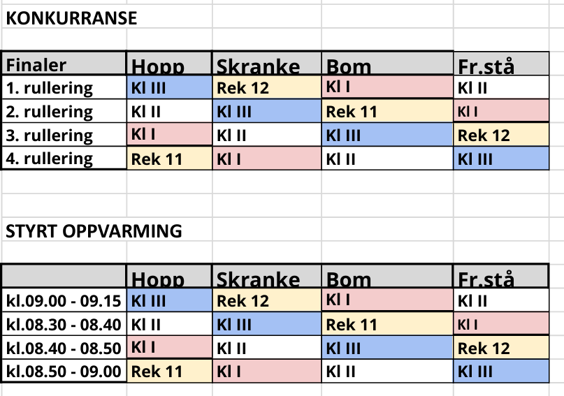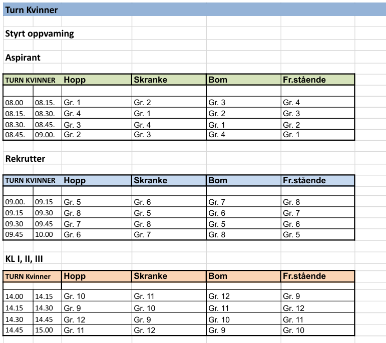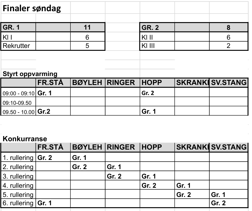 Tidsplan, Rulleringsplan og Gruppeinndelinger finner du nedenfor.